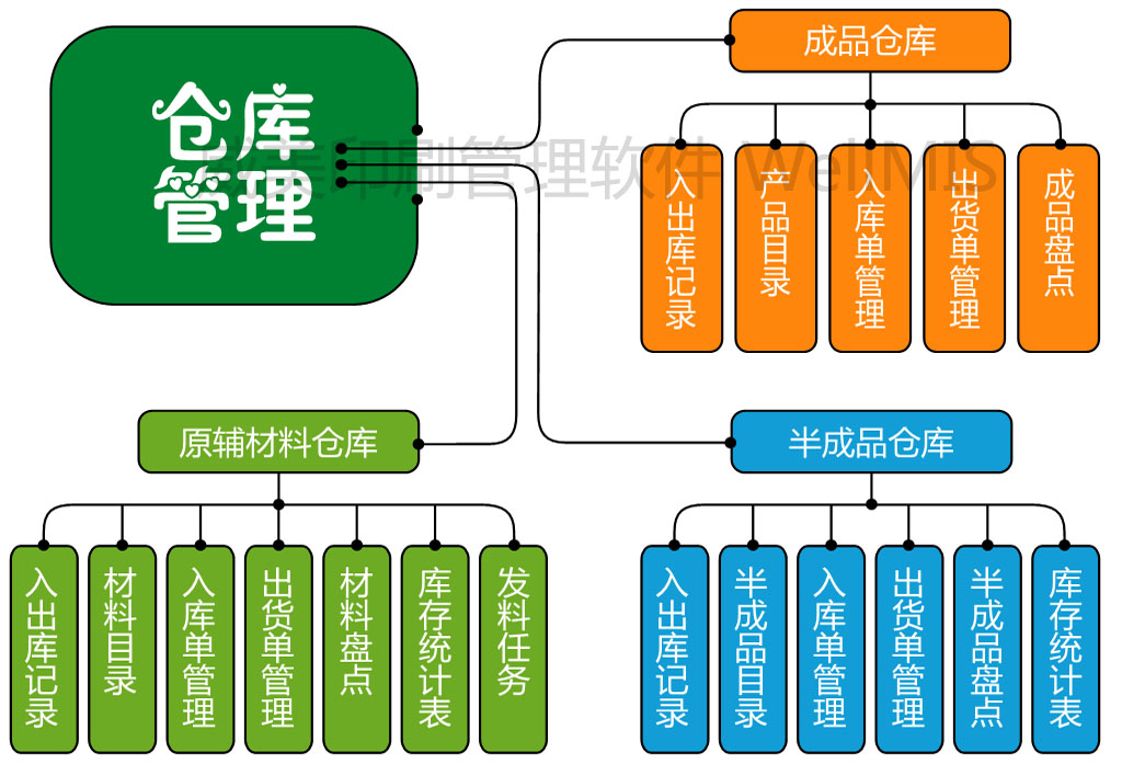 ● 原輔倉(cāng)庫(kù)子模塊包括:入出庫(kù)記錄查詢、材料目錄、入庫(kù)單、出貨單、盤點(diǎn)管理、庫(kù)存統(tǒng)計(jì)報(bào)表、發(fā)料任務(wù)等。