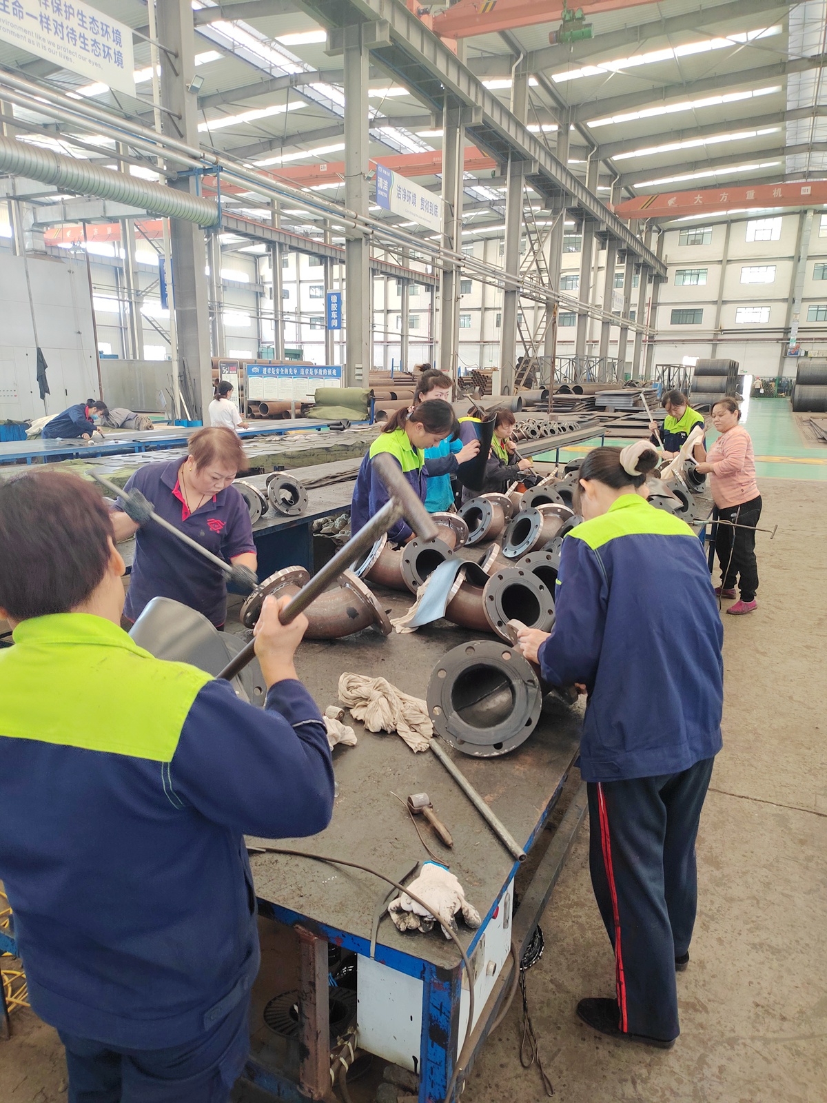 為了提升員工對襯膠工藝的認(rèn)識和實(shí)際操作能力,我們公司舉辦了一場別開生面的彎頭襯膠比賽。來自車間的18名選手參加了比賽。???彎頭襯膠就是將一種特殊材質(zhì)的橡膠板貼合在金屬彎頭的內(nèi)壁,以增強(qiáng)彎頭的耐磨性、防腐性和...