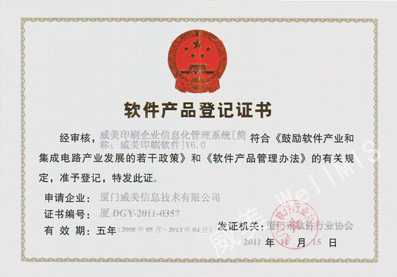 軟件產(chǎn)品登記證書