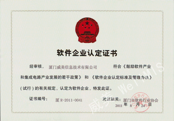 軟件企業(yè)認定證書