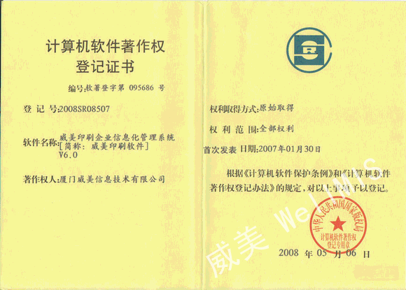 軟件著作權(quán)登記證書